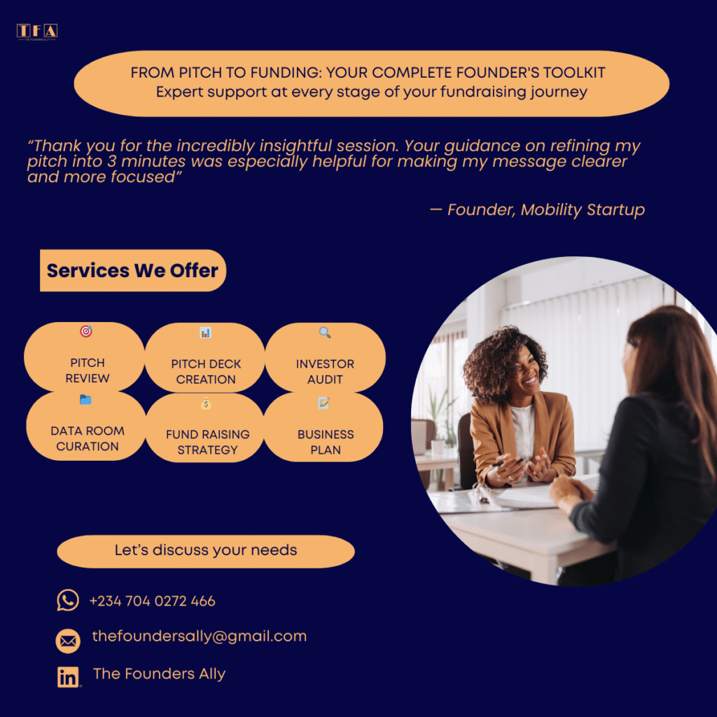 The impact of The Founders Ally goes beyond just fundraising. Blessing empowers founders to think strategically, refine their business models, and present themselves with confidence. By helping entrepreneurs tell clearer stories and build stronger strategies, she ensures that startups are not only ready for investors but also better positioned for sustainable growth.